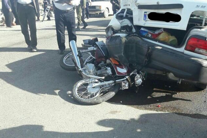 لحظه تصادف شدید موتورسیکلت با پراید در خیابان هلال آران و بیدگل